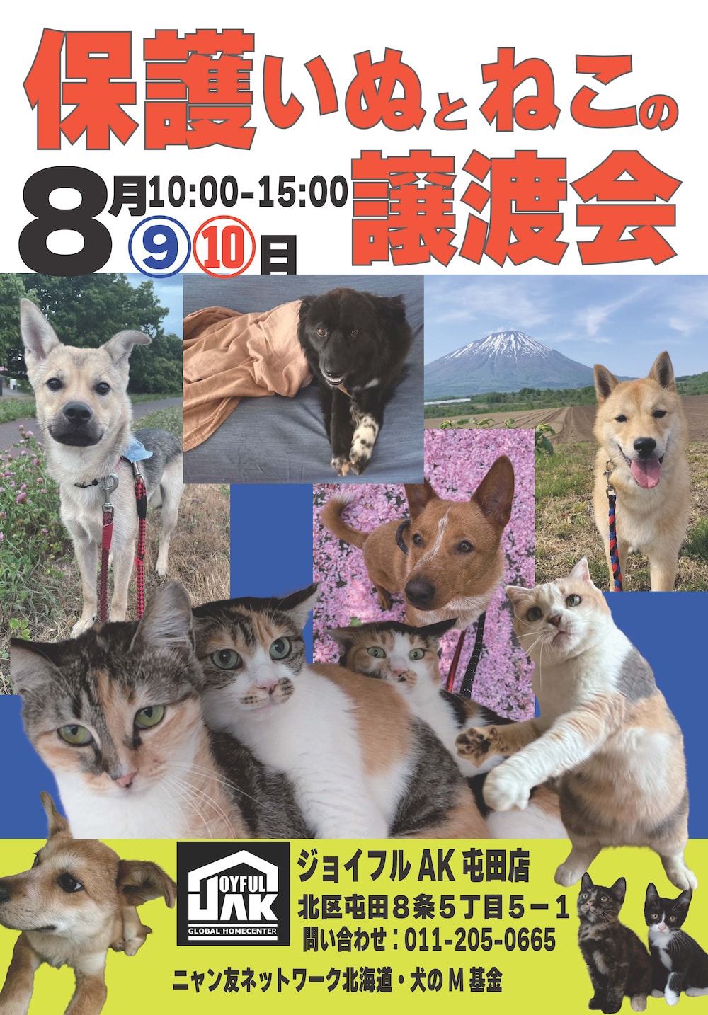 - あみねこ販売情報:北海道北広島市 2026年3月7.8日(土日) - 保護猫の譲渡会atジョイフルAK 大曲店