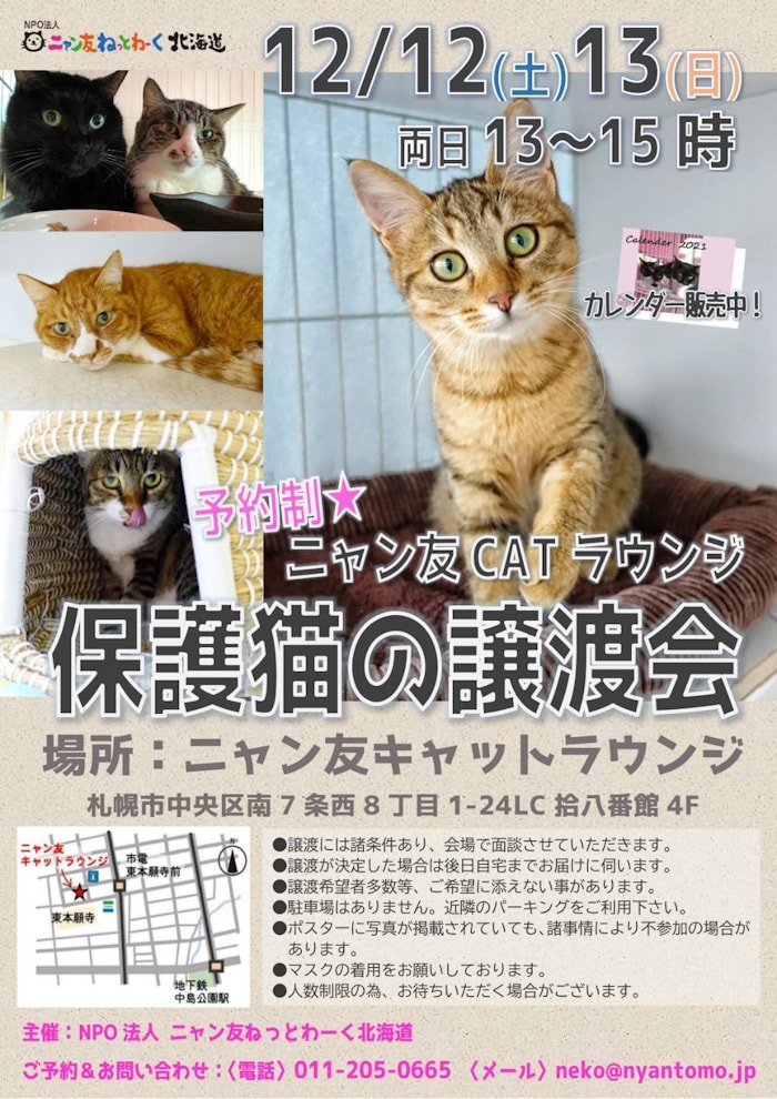 - あみねこ販売情報:北海道札幌市 2026年4月2日(木)〜4日(土) - 保護猫・保護犬のためのニャン友チャリティーバザーinチ・カ・ホ