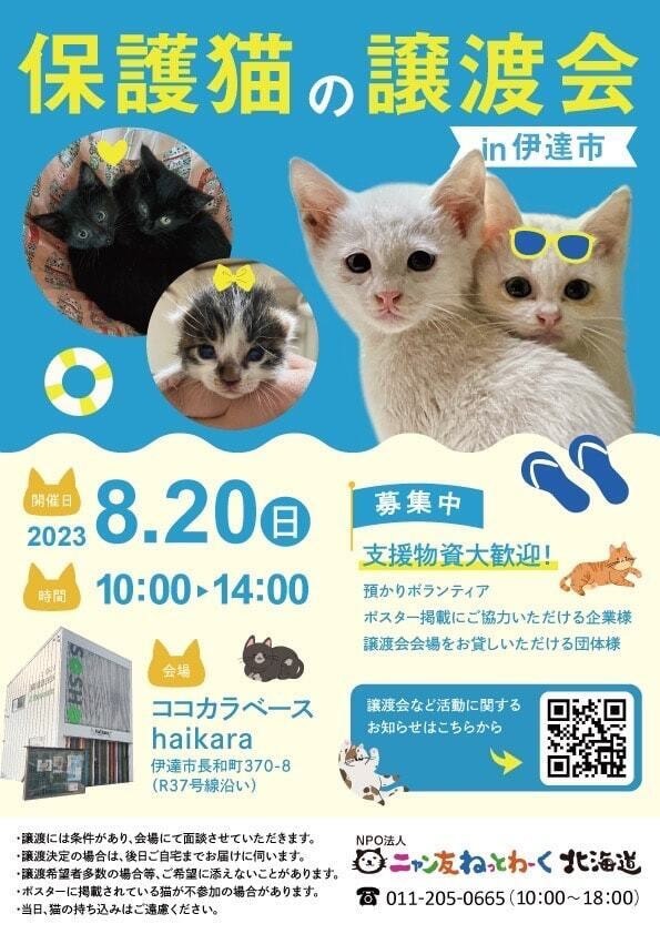 - あみねこ販売情報:北海道伊達市 2026年3月7日・8日(土・日) - 保護猫の譲渡会in伊達市